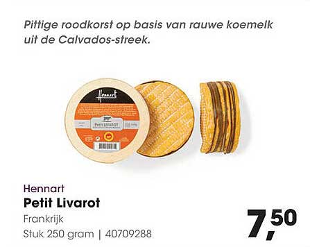Ben jij ook zo'n fan van kaas? Dan hebben we geweldig nieuws voor jou! Op deze pagina vind je de unieke Petit Livarot, een pittige roodkorst kaas uit de Calvados-streek in Frankrijk. Deze kaas is niet alleen een genot voor de smaakpapillen, maar ook een aanwinst voor elke borrelplank. Of je nu een kaasliefhebber bent of gewoon je gasten wilt verrassen, dit is de perfecte keuze. Deze aanbieding is geldig van 6 oktober tot en met 18 oktober 2025, dus mis het niet!
