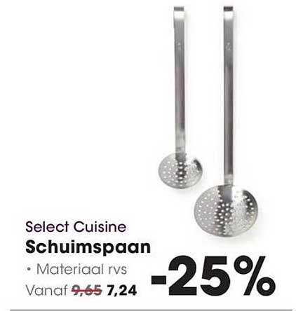 Ontdek de fantastische Select Cuisine schuimspaan, nu met een korting van maar liefst 25%! Deze keukenhulp is onmisbaar voor elke thuiskok die graag gerechten maakt met perfect geblancheerde of gefrituurde ingrediënten. Een betrouwbare schuimspaan helpt niet alleen bij het afschuimen van potten en pannen maar ook bij het gemakkelijk uitnemen van voedsel uit het vet of water. Met deze aanbieding maak je een slimme investering in je keukenaccessoires.