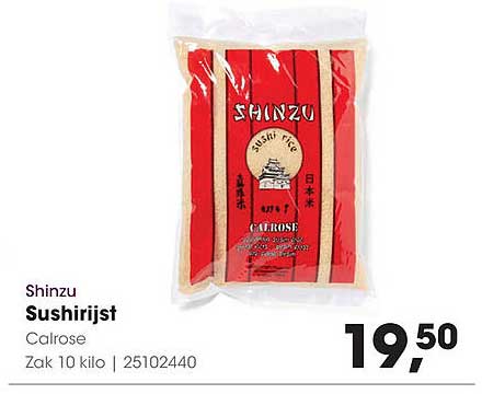 Ben je op zoek naar de perfecte basis voor je sushi? Dan is de Shinzu Sushirijst precies wat je nodig hebt! Deze premium sushirijst is speciaal ontwikkeld voor het maken van authentieke sushi, en dat maakt deze aanbieding op deze pagina des te aantrekkelijker. Met een zak van 10 kilo heb je meer dan genoeg om te experimenteren met verschillende sushi-recepten en om je vrienden en familie te verrassen met je kookkunst.