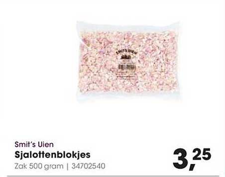 Op zoek naar een gemakkelijke manier om je gerechten een smaakvolle kick te geven? Kijk dan hier! De Sjalottenblokjes van Smit's Uien zijn de perfecte oplossing voor in elke keuken. Deze handige verpakking van 500 gram zorgt ervoor dat je altijd kunt beschikken over deze veelzijdige ingredienten, zonder dat je zelf hoeft te snijden.