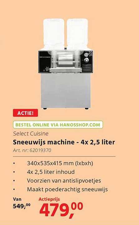 Bekijk nu de Sneeuwijs machine - 4x 2,5 liter aanbieding in de HANOS folder. Deze aanbieding is geldig van 03-11-2025 tot en met 16-11-2025.