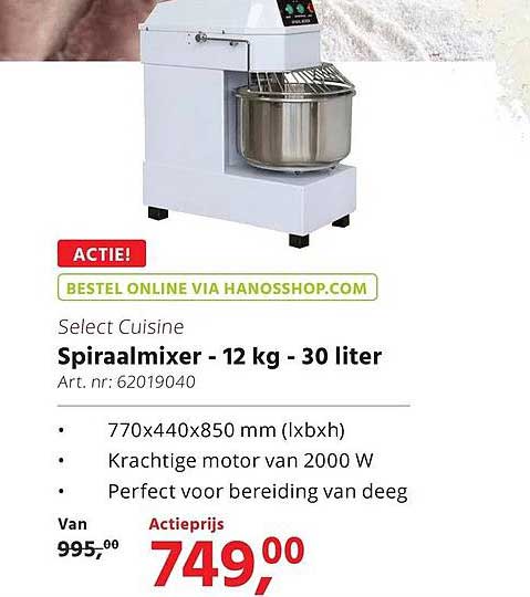 Heb je altijd al de perfecte deegmix willen maken voor jouw bakprojecten? Dan is deze spiraalmixer van Select Cuisine echt iets voor jou! Met een krachtig vermogen van 2000 W en een stevige capaciteit van 12 kg, is deze mixer ideaal voor zowel thuisbakkers als professionele keukenassistenten. In deze aanbieding, die geldig is van 13 oktober tot 19 oktober 2025, kun je deze uitstekende mixer nu voordelig aanschaffen.
