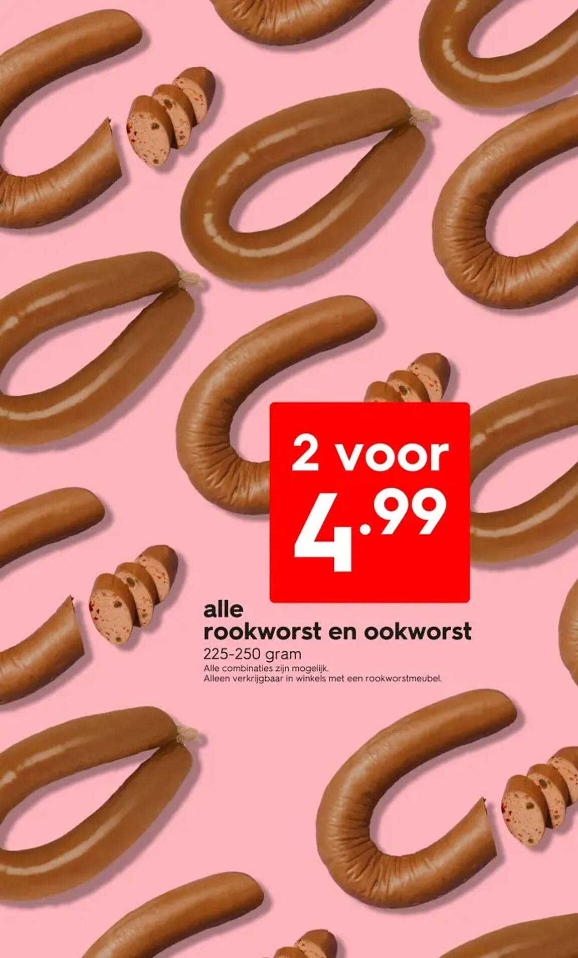 Ben je een liefhebber van rookworst en ookworst? Dan hebben wij geweldig nieuws voor jou! Op deze pagina vind je een fantastische aanbieding die je niet wilt missen. Van 27 oktober tot en met 2 november kun je namelijk profiteren van een aantrekkelijke actie: koop twee stuks voor slechts 4,99. Deze actie geldt voor alle soorten rookworst en ookworst die beschikbaar zijn. Perfect voor een gezellige avond of een smakelijke toevoeging aan je maaltijd.