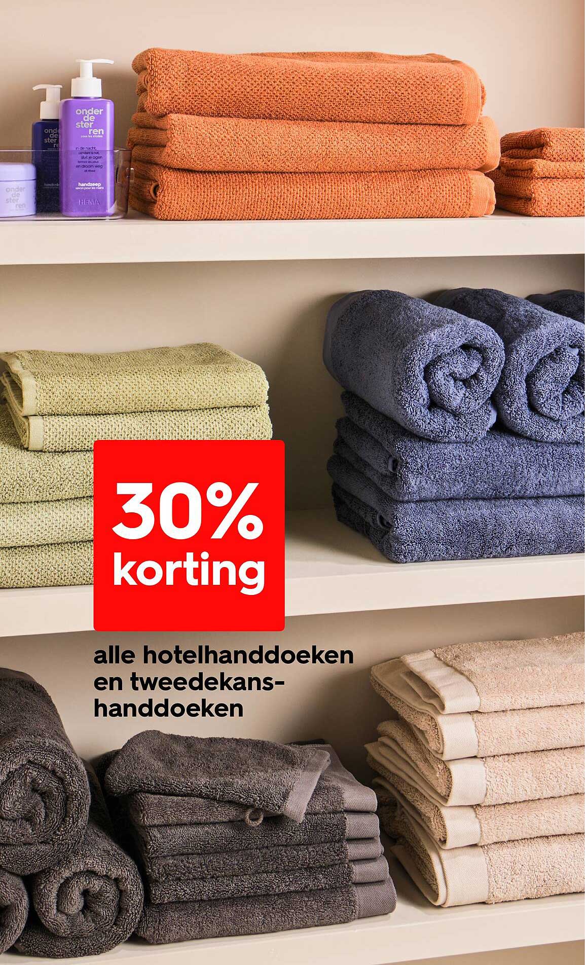 Heb je behoefte aan nieuwe handdoeken? Dan is dit het perfecte moment om je badkamer een upgrade te geven! Met maar liefst 30% korting op alle hotelhanddoeken en tweedekanshanddoeken bij HEMA, profiteer je van een geweldige deal. Of je nu op zoek bent naar zachte en luxe hotelhanddoeken of duurzame alternatieven, op deze pagina vind je alles wat je nodig hebt. Deze aanbieding is geldig van 2025-11-03 tot en met 2025-11-09, dus mis het niet!