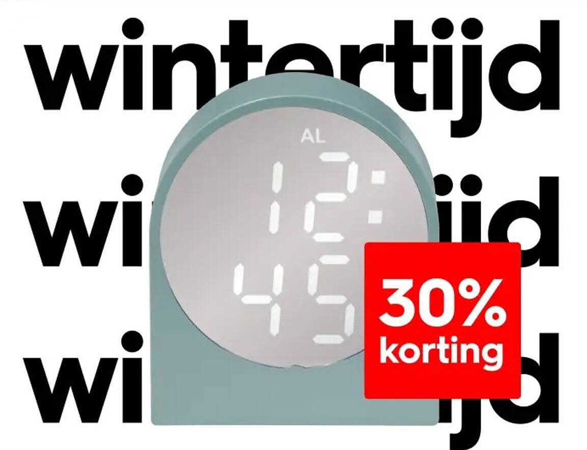 Bekijk nu de 30% korting op de HEMA klok tijdens de wintertijd aanbieding in de HEMA folder. Deze aanbieding is geldig van 27-10-2025 tot en met 02-11-2025.