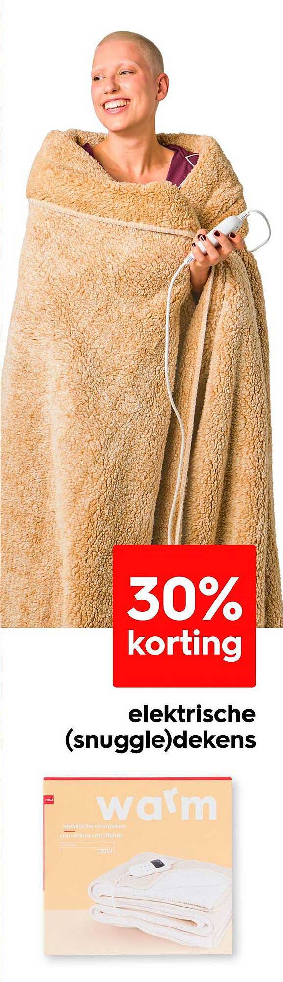 Bekijk nu de 30% korting op elektrische (snuggle)dekens aanbieding in de HEMA folder. Deze aanbieding is geldig van 13-10-2025 tot en met 19-10-2025.