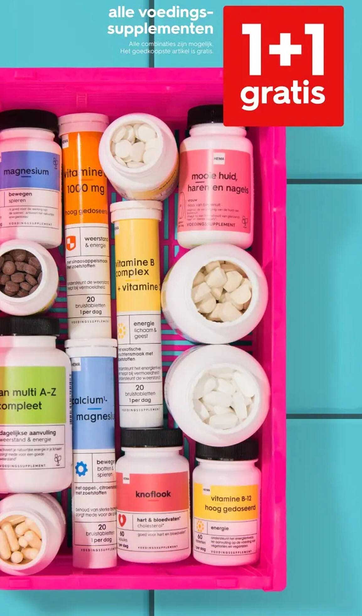 Ontdek de geweldige Alle Voedingssupplementen aanbieding in de nieuwste HEMA folder. Naast deze aanbieding vind je nog veel meer aantrekkelijke kortingen. Je kunt de Alle Voedingssupplementen eenvoudig online bestellen via de HEMA website of kopen in een winkel bij jou in de buurt.