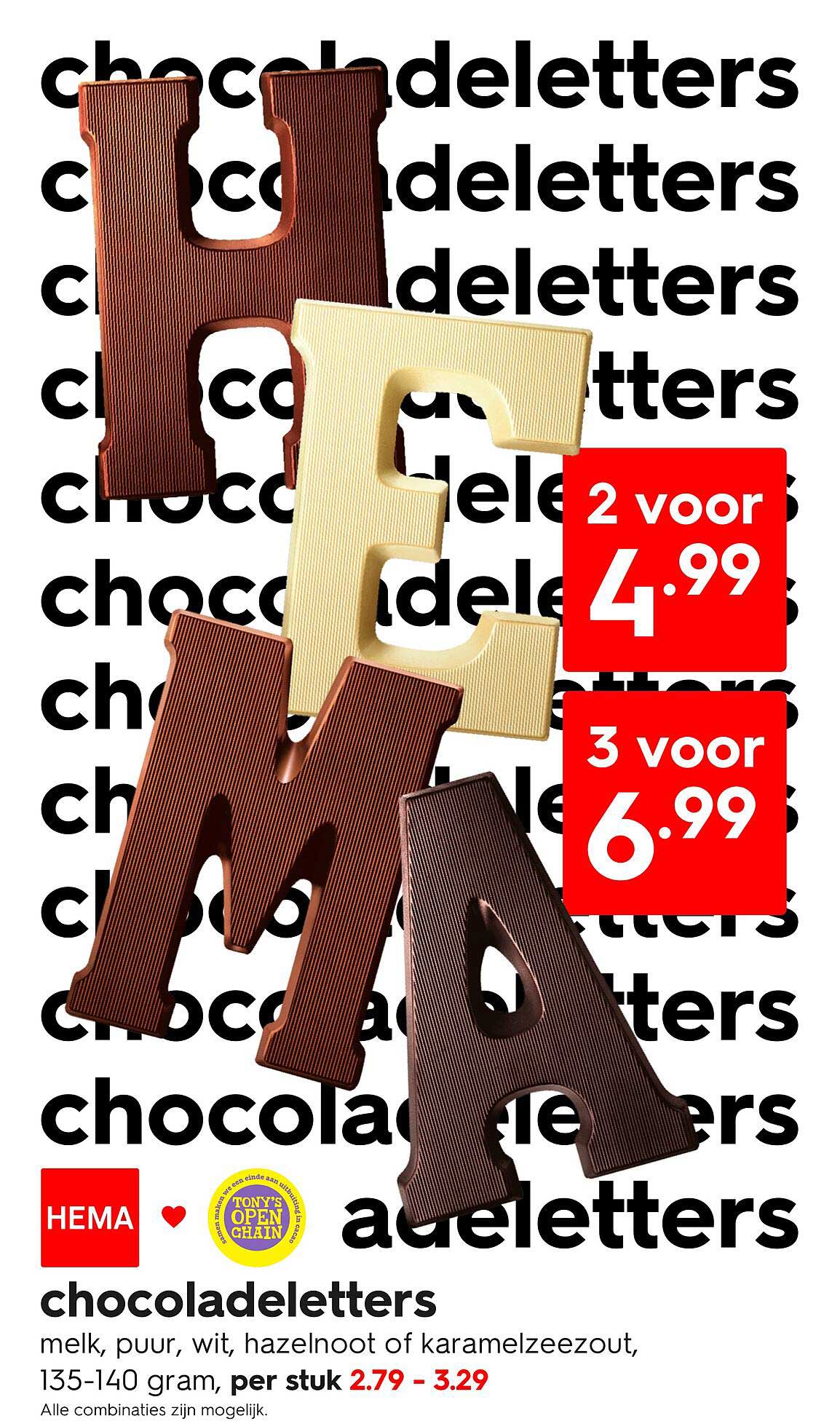 Bekijk nu de chocoladeletters aanbieding in de HEMA folder. Deze aanbieding is geldig van 20-10-2025 tot en met 26-10-2025.