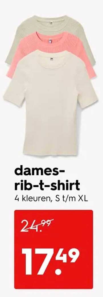 Bekijk nu de dames-rib-t-shirt aanbieding in de HEMA folder. Deze aanbieding is geldig van 07-04-2025 tot en met 20-04-2025.