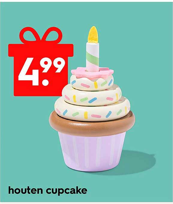 Ben je op zoek naar een schattig cadeau voor een verjaardag of een leuke aanvulling voor de speelkamer? Dan is deze houten cupcake absoluut een aanrader! Met zijn vrolijke kleuren en schattige design brengt deze cupcake een glimlach op ieders gezicht. Deze aanbieding is geldig van 2025-10-11 tot en met 2025-12-05, dus mis het niet!