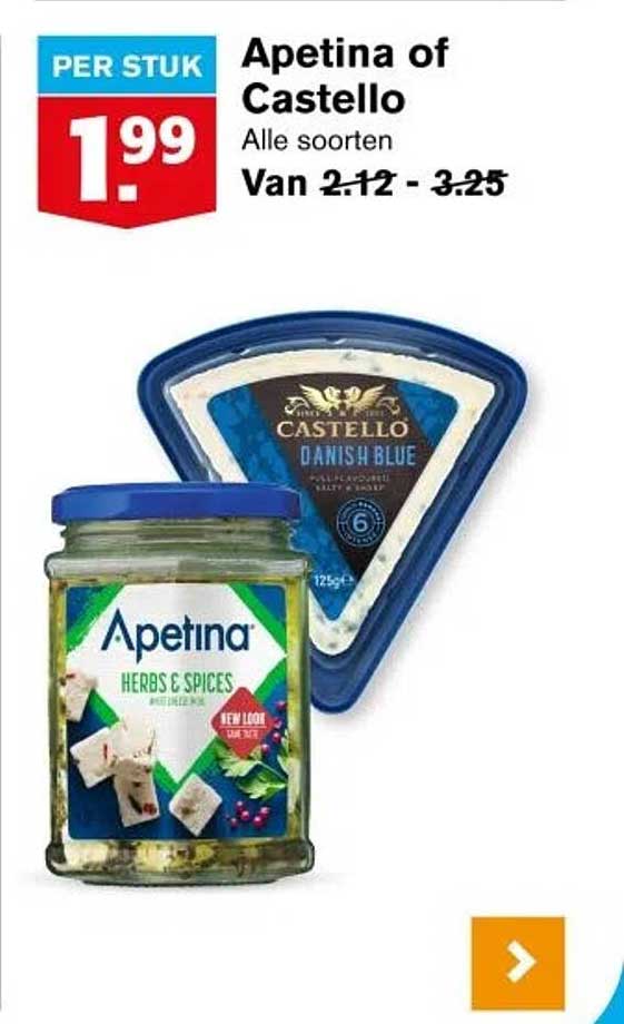 Bekijk de Apetina Of Castello aanbieding bij Hoogvliet! Deze fantastische aanbieding is nu beschikbaar in de nieuwste Hoogvliet folder. Profiteer van deze kans en bespaar flink op je aankoop.