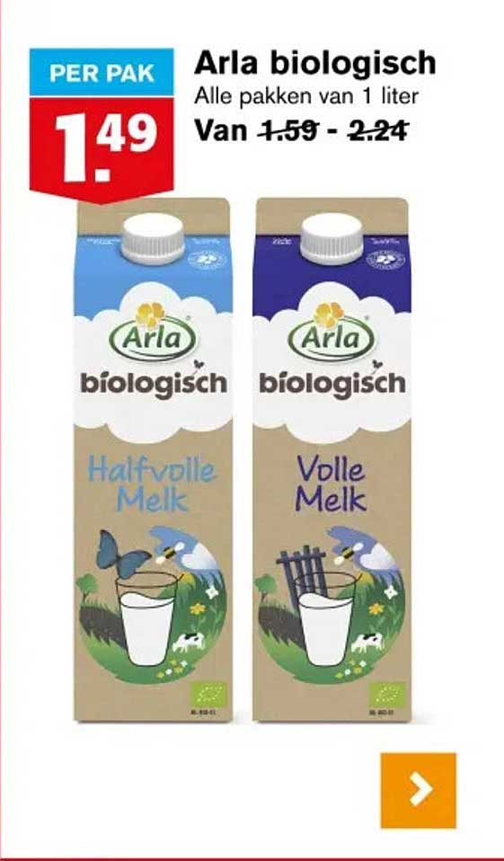 Bekijk de Arla Biologisch aanbieding bij Hoogvliet! Deze fantastische aanbieding is nu beschikbaar in de nieuwste Hoogvliet folder. Profiteer van deze kans en bespaar flink op je aankoop.