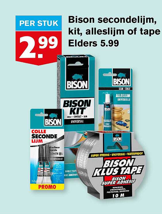 Bison Secondenlijm, Kit, Alleslijm Of Tape aanbieding bij Hoogvliet