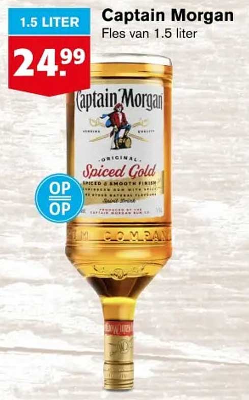 Met een prijs van slechts €24,99 voor 1.5 liter Captain Morgan, krijg je waar voor je geld. Normaliter vind je deze fles voor een hogere prijs in de winkels, dus grijp nu je kans om te profiteren van deze speciale aanbieding. Dat maakt het een geweldige deal, waar je niet snel voorbij kunt lopen.