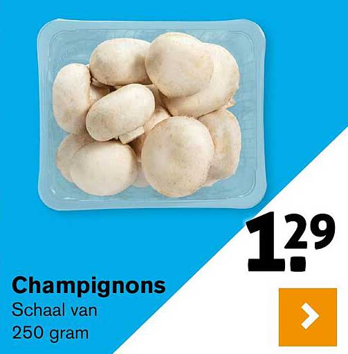 Wil je direct op de hoogte zijn zodra de Champignons in de aanbieding is? Meld je aan voor onze aanbiedingen-alert. Zo krijg je een melding zodra het product tegen een voordelige prijs beschikbaar is.