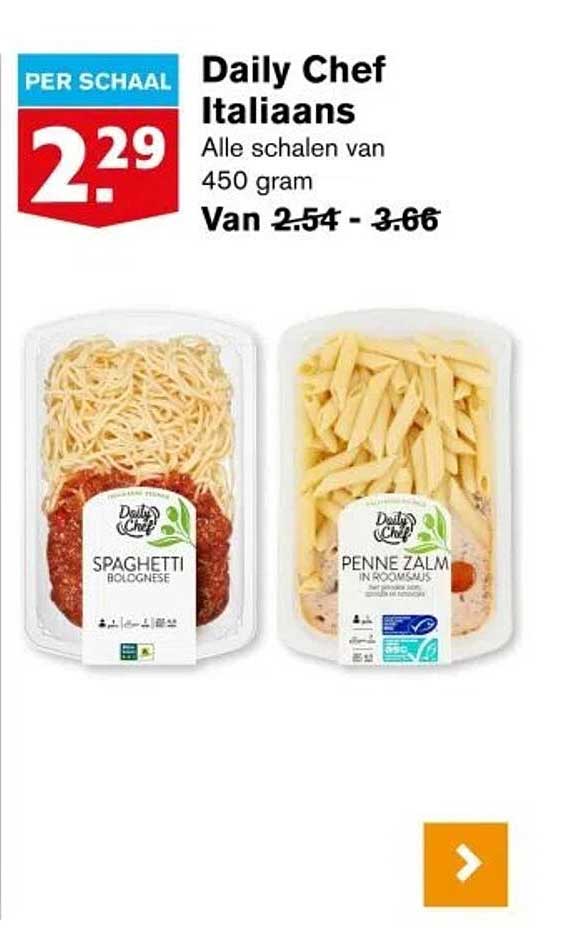 Bekijk de Daily Chef Italiaans aanbieding bij Hoogvliet! Deze fantastische aanbieding is nu beschikbaar in de nieuwste Hoogvliet folder. Profiteer van deze kans en bespaar flink op je aankoop.