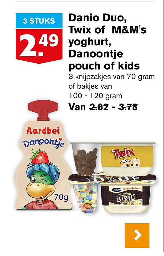 Ontdek de Danio Duo, Twix Of M&M's Yoghurt, Danonnetje Pouch Of Kids