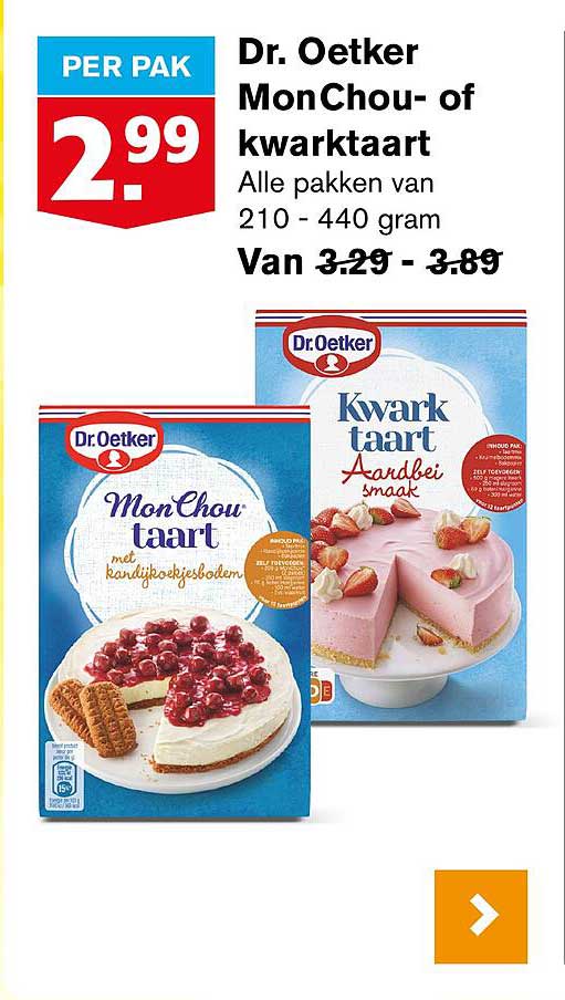 Heb jij een feestelijke gelegenheid of gewoon zin in iets lekkers? Dan is deze aanbieding echt iets voor jou! De Dr. Oetker MonChou- of kwarktaart is niet alleen heerlijk, maar ook eenvoudig te bereiden. Met deze taarten tover je in een handomdraai een feestelijke traktatie op tafel. Deze aanbieding, geldig van 16 tot en met 22 april 2025, maakt het extra aantrekkelijk om jezelf of je gasten te verwennen.