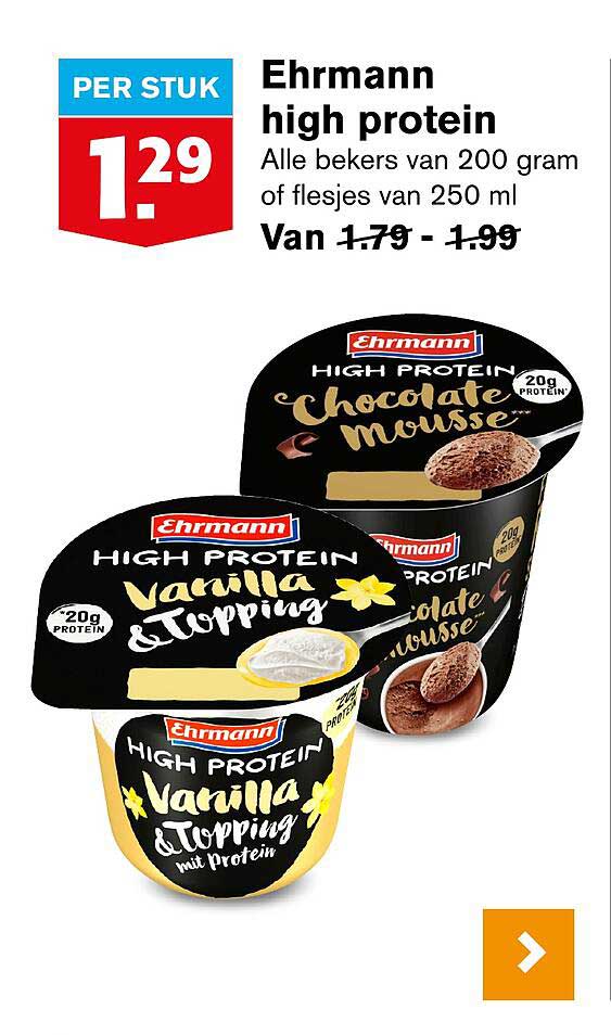 Ontdek de geweldige Ehrmann High Protein aanbieding in de nieuwste Hoogvliet folder. Naast deze aanbieding vind je nog veel meer aantrekkelijke kortingen. Je kunt de Ehrmann High Protein eenvoudig online bestellen via de Hoogvliet website of kopen in een winkel bij jou in de buurt.