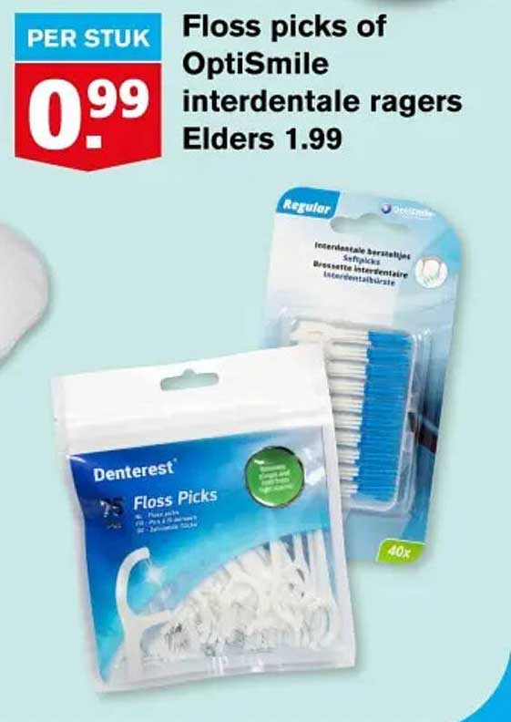 Ben je op zoek naar een effectieve en handige manier om je mondhygiëne te optimaliseren? Dan is de aanbieding van de floss picks of OptiSmile interdentale ragers echt iets voor jou! Deze aanbieding loopt van 2 april 2025 tot en met 8 april 2025 en laat je profiteren van een geweldige prijs.