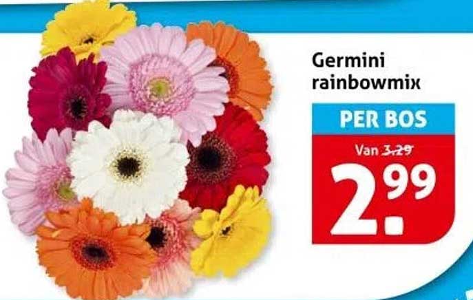 Bekijk nu de Germini rainbowmix aanbieding in de Hoogvliet folder. Deze aanbieding is geldig van 01-10-2025 tot en met 07-10-2025.