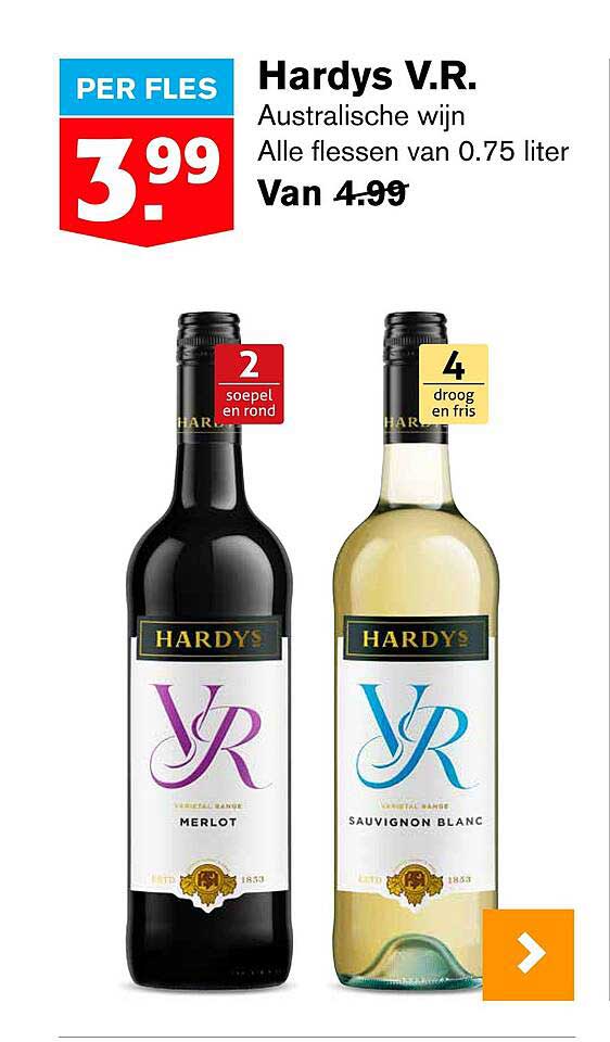 Bekijk nu de Hardys V.R. Australische wijn aanbieding in de Hoogvliet folder. Deze aanbieding is geldig van 12-03-2025 tot en met 18-03-2025.