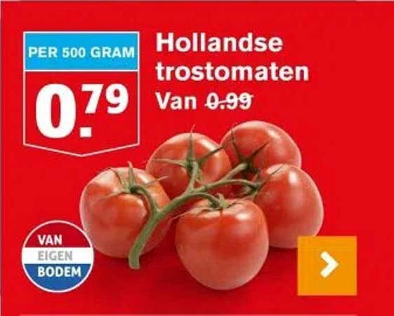 Bekijk de Hollandse Trostomaten aanbieding bij Hoogvliet! Deze fantastische aanbieding is nu beschikbaar in de nieuwste Hoogvliet folder. Profiteer van deze kans en bespaar flink op je aankoop.