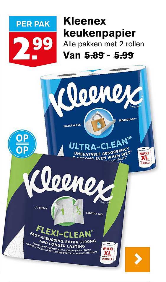 Bekijk de Kleenex Keukenpapier aanbieding bij Hoogvliet! Deze fantastische aanbieding is nu beschikbaar in de nieuwste Hoogvliet folder. Profiteer van deze kans en bespaar flink op je aankoop.