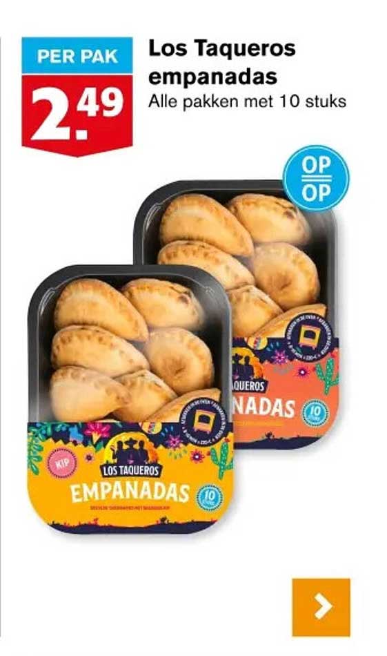 Als je op zoek bent naar een smakelijke en gemakkelijke snack, dan zijn de Los Taqueros empanadas een geweldige keuze! Deze heerlijke empanadas zijn perfect voor elke gelegenheid, of je nu een feestje organiseert of gewoon lekker wilt snacken. Met een aantrekkelijke prijs van slechts €2,49 per pak van 10 stuks, is dit een aanbieding die je niet wilt missen. De aanbieding is geldig van 2 april tot en met 8 april 2025, dus zorg ervoor dat je snel bent, want op=op!