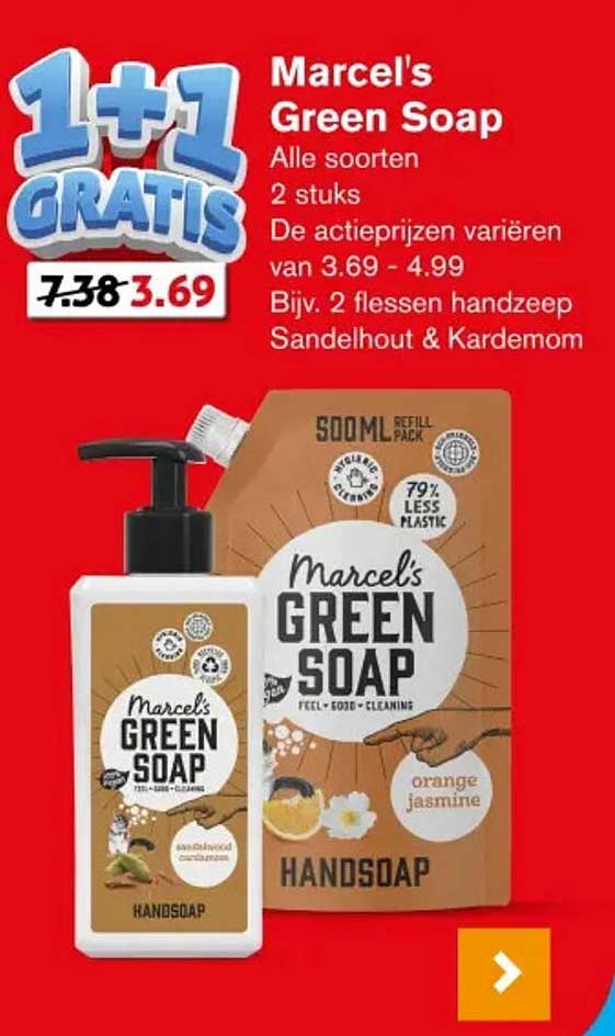 Ontdek de geweldige Marcel's Green Soap aanbieding in de nieuwste Hoogvliet folder. Naast deze aanbieding vind je nog veel meer aantrekkelijke kortingen. Je kunt de Marcel's Green Soap eenvoudig online bestellen via de Hoogvliet website of kopen in een winkel bij jou in de buurt.