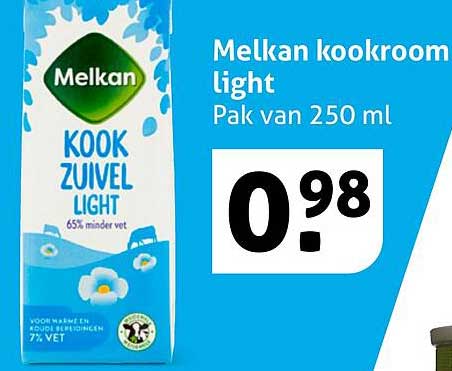 Bekijk de Melkan Kookroom Light aanbieding bij Hoogvliet! Deze fantastische aanbieding is nu beschikbaar in de nieuwste Hoogvliet folder. Profiteer van deze kans en bespaar flink op je aankoop.
