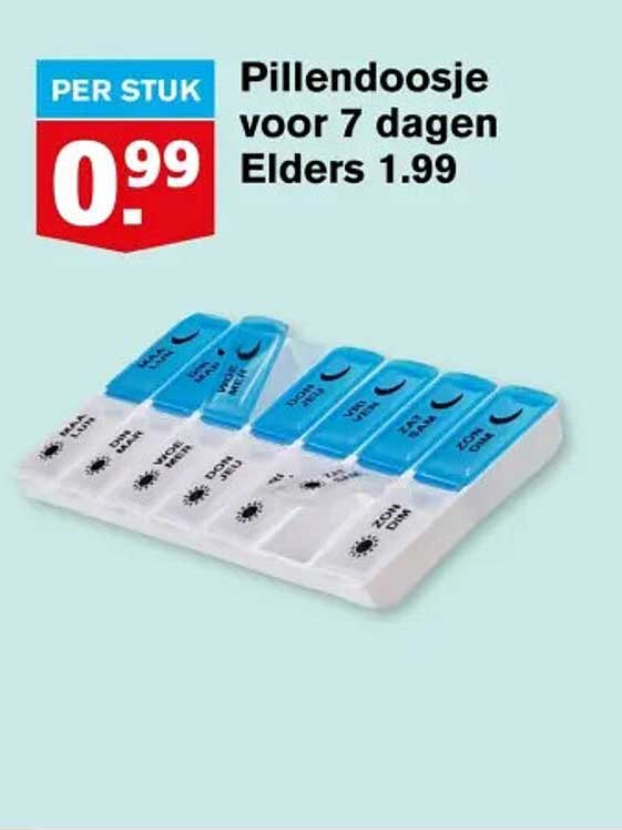 Bekijk de Pillendoosje Voor 7 Dagen aanbieding bij Hoogvliet! Deze fantastische aanbieding is nu beschikbaar in de nieuwste Hoogvliet folder. Profiteer van deze kans en bespaar flink op je aankoop.