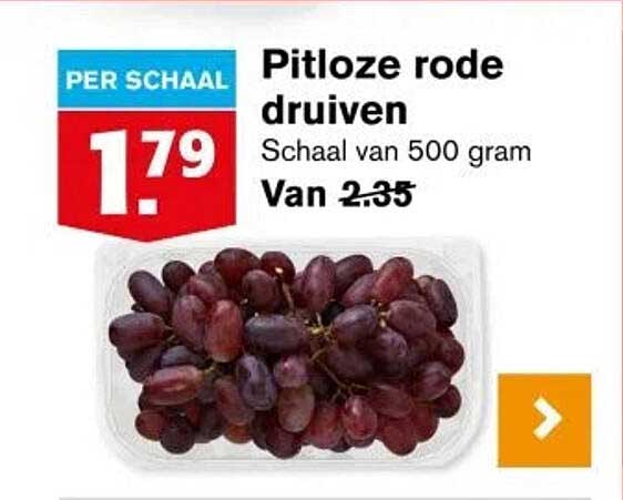 Bekijk de Pitloze Rode Druiven aanbieding bij Hoogvliet! Deze fantastische aanbieding is nu beschikbaar in de nieuwste Hoogvliet folder. Profiteer van deze kans en bespaar flink op je aankoop.