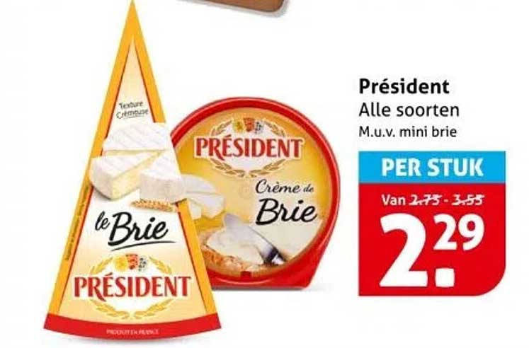 Bekijk nu de Président Alle soorten M.u.v. mini brie aanbieding in de Hoogvliet folder. Deze aanbieding is geldig van 15-10-2025 tot en met 21-10-2025.