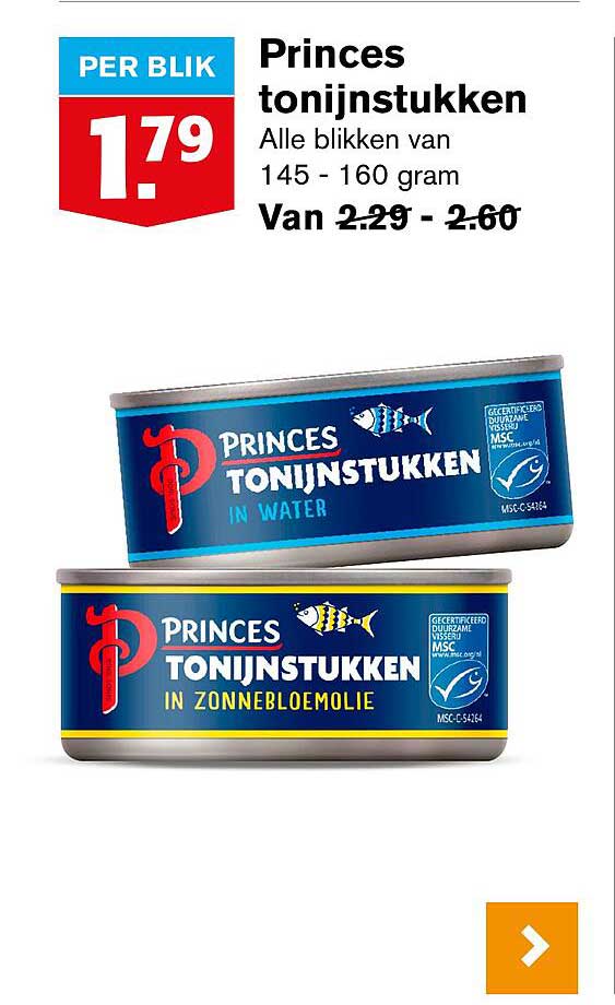 Ontdek de geweldige Princes Tonijnstukken aanbieding in de nieuwste Hoogvliet folder. Naast deze aanbieding vind je nog veel meer aantrekkelijke kortingen. Je kunt de Princes Tonijnstukken eenvoudig online bestellen via de Hoogvliet website of kopen in een winkel bij jou in de buurt.