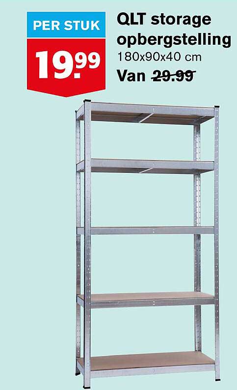Ben je op zoek naar de perfecte oplossing om je spullen overzichtelijk op te bergen? Dan is de QLT storage opbergstelling echt iets voor jou! Met zijn handige afmetingen van 180x90x40 cm biedt deze opbergstelling een uitstekende manier om je ruimte efficiënt te benutten. Of je nu je garage, schuur of kantoor wilt ordenen, dit product is een geweldige keuze die nu ook nog eens in de aanbieding is.