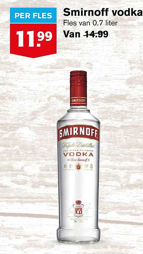 Ontdek de geweldige Smirnoff Vodka aanbieding in de nieuwste Hoogvliet folder. Naast deze aanbieding vind je nog veel meer aantrekkelijke kortingen. Je kunt de Smirnoff Vodka eenvoudig online bestellen via de Hoogvliet website of kopen in een winkel bij jou in de buurt.