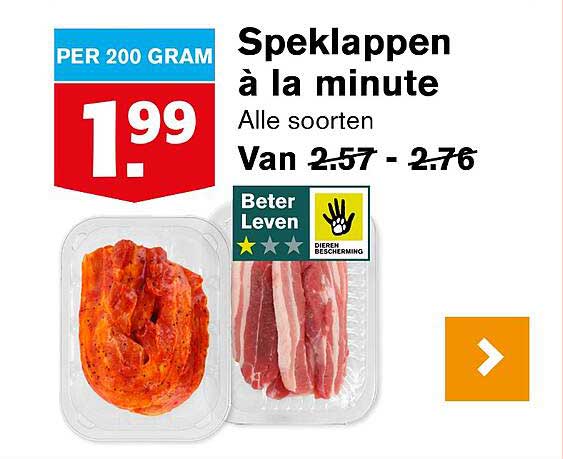 Bekijk de Speklappen À La Minute aanbieding bij Hoogvliet! Deze fantastische aanbieding is nu beschikbaar in de nieuwste Hoogvliet folder. Profiteer van deze kans en bespaar flink op je aankoop.