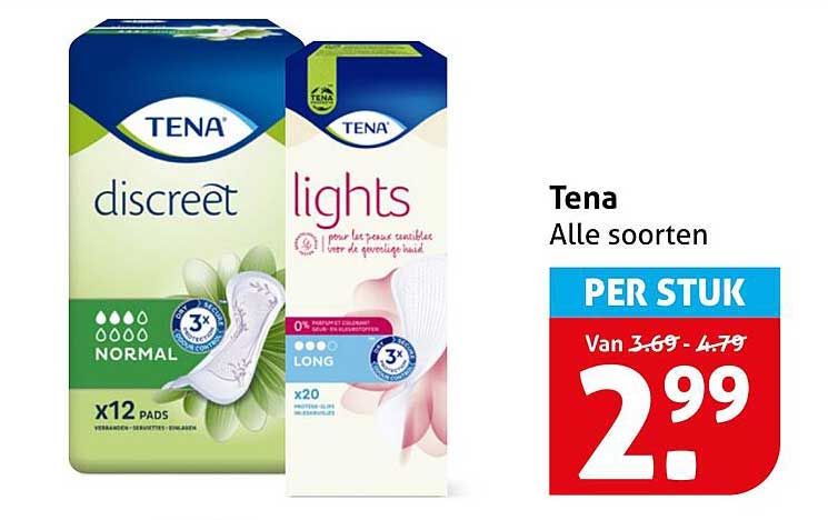 Normaal gesproken variëren de prijzen van Tena-producten van €3,69 tot €4,79, maar tijdens deze actie kun je ze voor slechts €2,99 per stuk kopen. Dit is een aanzienlijke besparing, waardoor het de perfecte tijd is om je voorraad aan te vullen of om ze voor het eerst uit te proberen. Waarom betalen voor meer als je de kwaliteit van Tena voor een lagere prijs kunt krijgen?