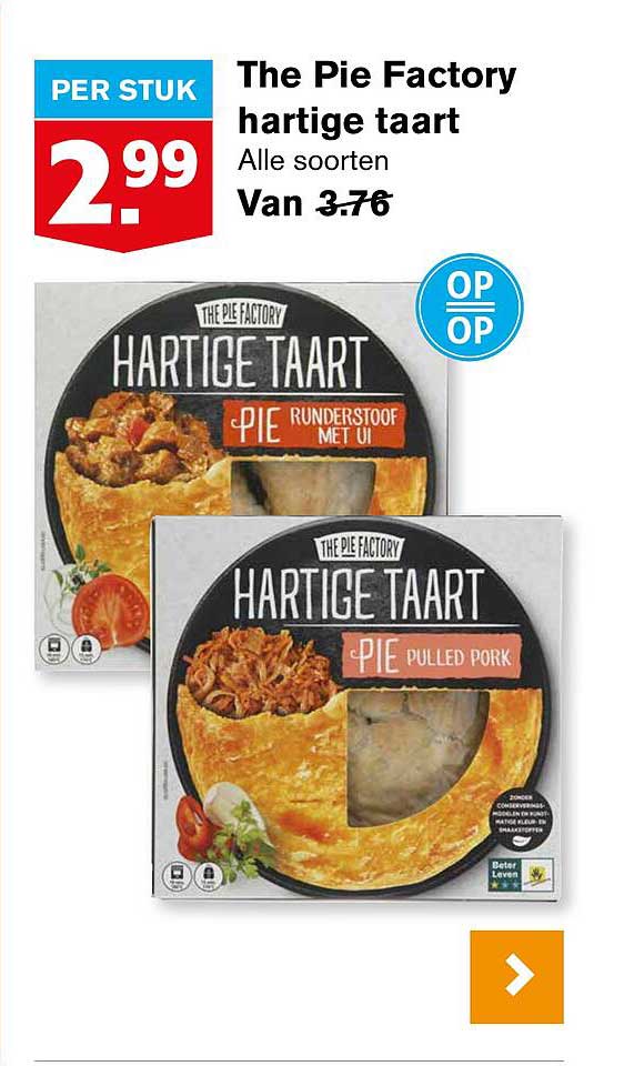 Bekijk de The Pie Factory Hartige Taart aanbieding bij Hoogvliet! Deze fantastische aanbieding is nu beschikbaar in de nieuwste Hoogvliet folder. Profiteer van deze kans en bespaar flink op je aankoop.