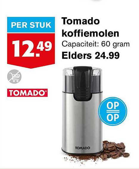 Bekijk de Tomado Koffiemolen aanbieding bij Hoogvliet! Deze fantastische aanbieding is nu beschikbaar in de nieuwste Hoogvliet folder. Profiteer van deze kans en bespaar flink op je aankoop.
