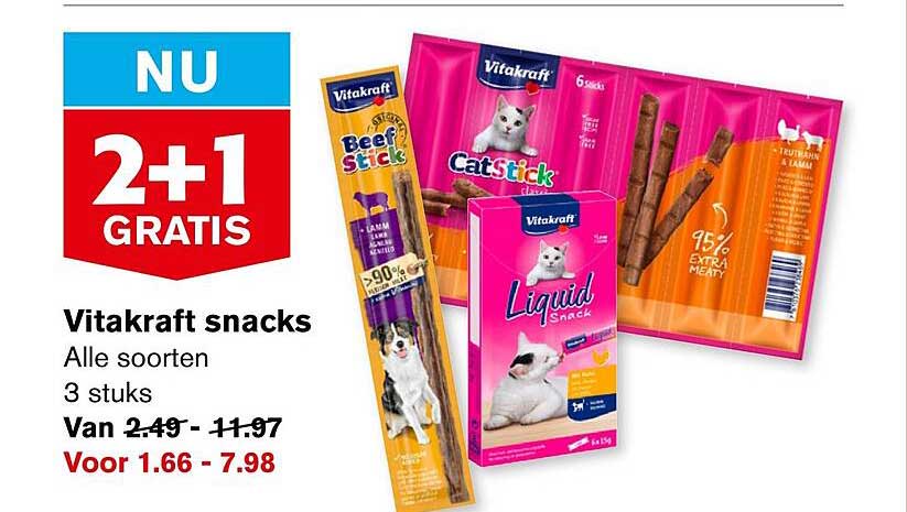 Bekijk de Vitakraft Snacks aanbieding bij Hoogvliet! Deze fantastische aanbieding is nu beschikbaar in de nieuwste Hoogvliet folder. Profiteer van deze kans en bespaar flink op je aankoop.