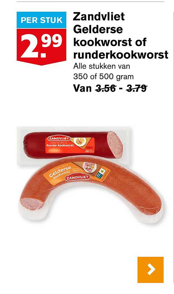 Bekijk de Zandvliet Gelderse Kookworst Of Runderkookworst aanbieding bij Hoogvliet! Deze fantastische aanbieding is nu beschikbaar in de nieuwste Hoogvliet folder. Profiteer van deze kans en bespaar flink op je aankoop.
