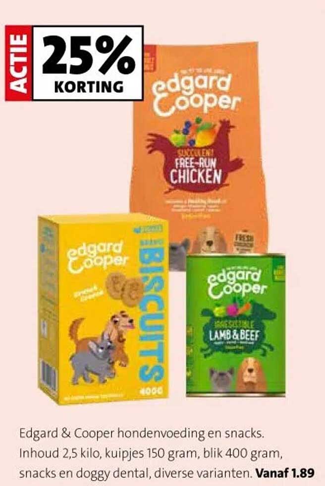 Heb je een viervoeter die je alleen het allerbeste wilt geven? Dan is deze aanbieding echt iets voor jou! Edgard & Cooper hondenvoeding en snacks zijn nu tijdelijk met maar liefst 25% korting te verkrijgen. Dit is hét moment om je hond te verwennen met voedzame en smakelijke producten. Van heerlijke brokken tot lekkere snacks, de producten zijn gemaakt van ingrediënten van hoge kwaliteit en zijn vrij van kunstmatige toevoegingen.