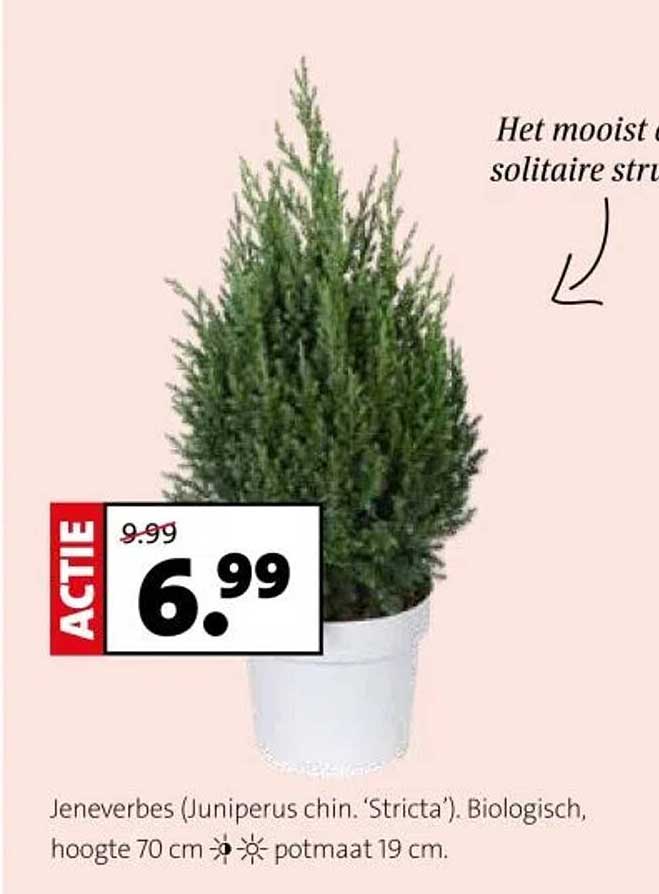Normaal gesproken kost deze prachtige jeneverbes €9,99, maar nu kun je hem aanschaffen voor slechts €6,99! Dat is een korting van maar liefst €3,00, wat deze aanbieding onweerstaanbaar maakt. Het is een geweldige kans om je tuin een upgrade te geven zonder je budget te overschrijden.