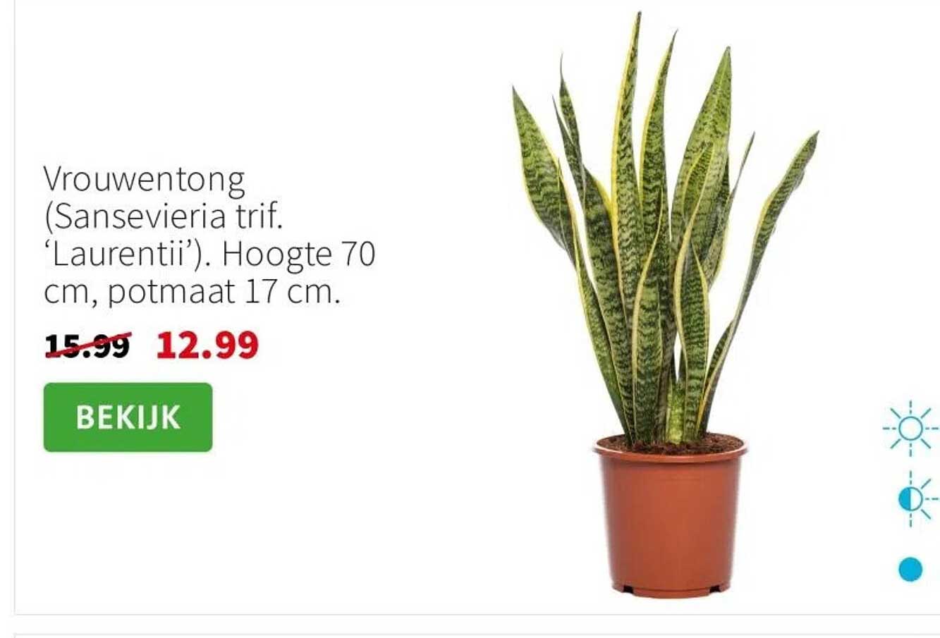 Bekijk nu de Vrouwentong (Sansevieria trifasciata 'Laurentii') aanbieding in de Intratuin folder. Deze aanbieding is geldig van 11-08-2025 tot en met 17-08-2025.