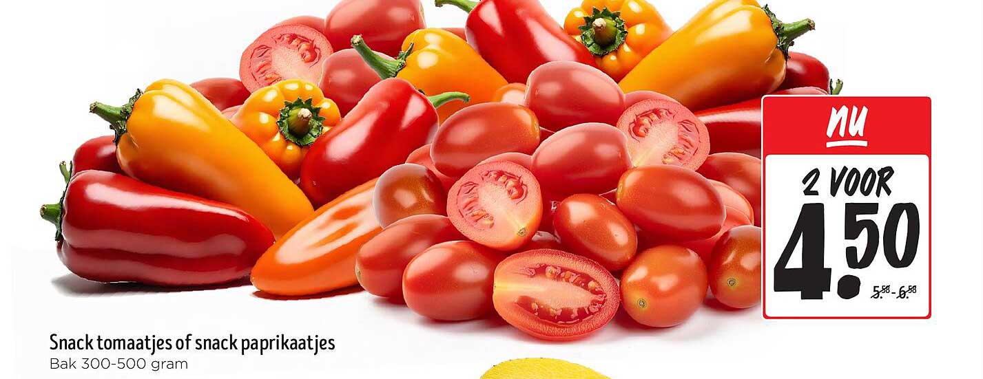 Deze week heeft Jumbo een geweldige aanbieding voor jou! De smakelijke snacktomaatjes en snackpaprikaatjes zijn nu in de aanbieding. Deze kleurrijke groenten zijn perfect voor een snack, in salades of als toevoeging aan je favoriete gerechten. Ze zijn niet alleen lekker, maar ook gezond en vol voedingsstoffen.