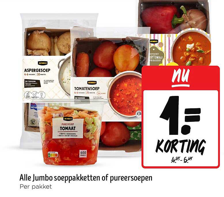 Bekijk nu de Alle Jumbo soeppakkettten of pureersoepen aanbieding in de Jumbo folder. Deze aanbieding is geldig van 16-04-2025 tot en met 22-04-2025.