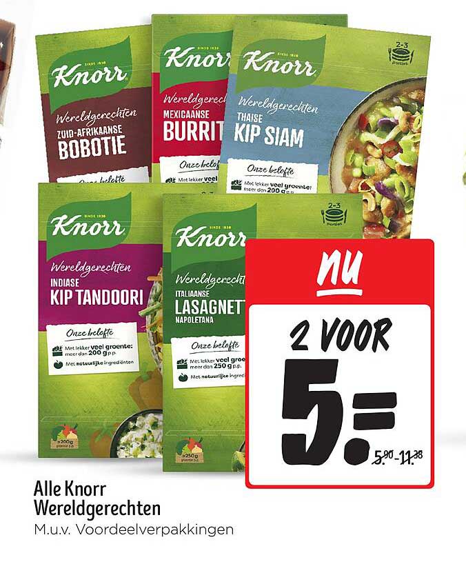 Ben jij op zoek naar een wereldse smaakervaring in je eigen keuken? Dan is deze aanbieding van Knorr Wereldgerechten precies waar je naar op zoek bent. Deze heerlijke maaltijden zijn perfect voor iedereen die houdt van snel, makkelijk en lekker koken. Of je nu zin hebt in een Indische kip tandoori, Mexicaanse burrito of Thaise kip siam, met deze aanbiedingen haal je de wereld in huis. Mis het niet, want de aanbieding is geldig van 2025-07-02 tot en met 2025-07-08!