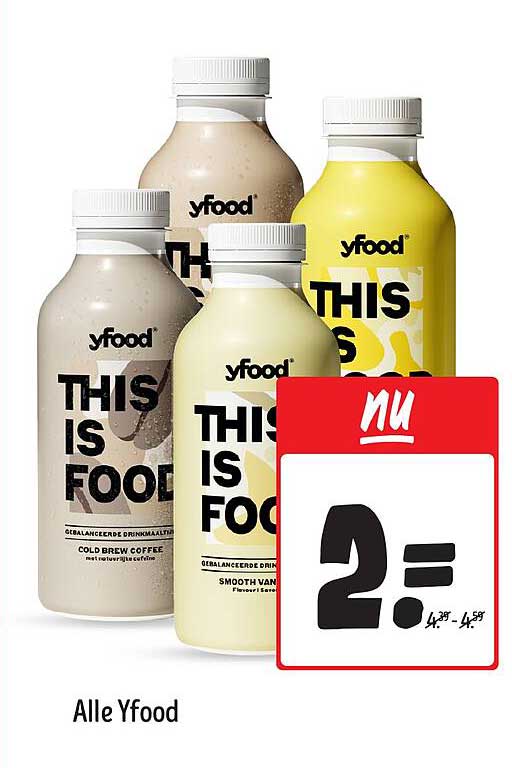 Normaal gesproken kosten Yfood-drinkmaaltijden €4,39, maar met deze aanbieding betaal je nu slechts €2,= per fles! Dit is een significante besparing en een mooie kans om verschillende smaken uit te proberen zonder je budget te overschrijden.